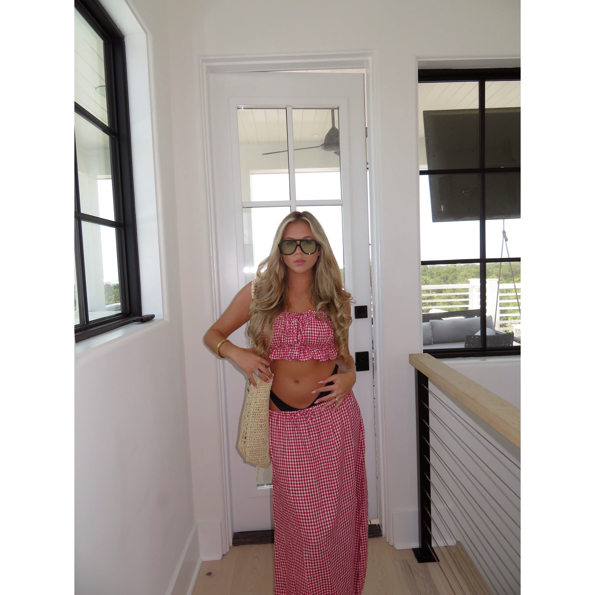Gingham Waist Maxi Skirt