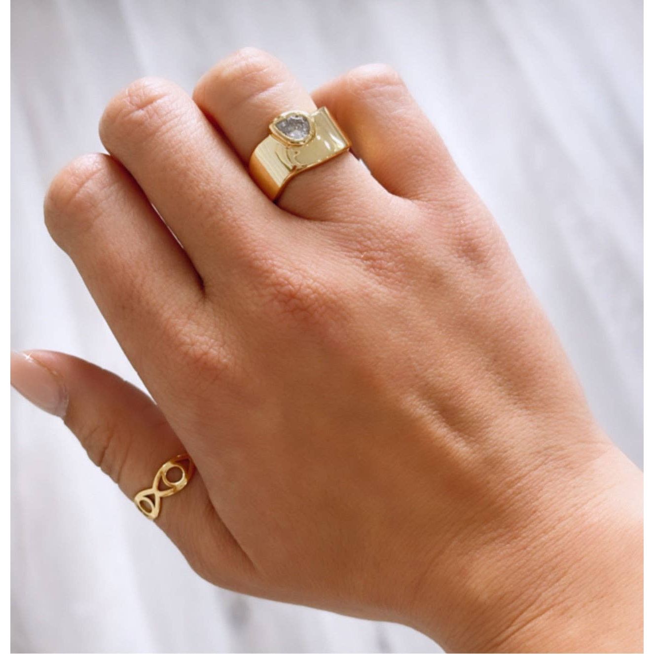 Flaunt your sparkle in our Kiara Band Ring. This exquisite band features a stunning cz tear drop in the middle to add extra flare to your fingers.